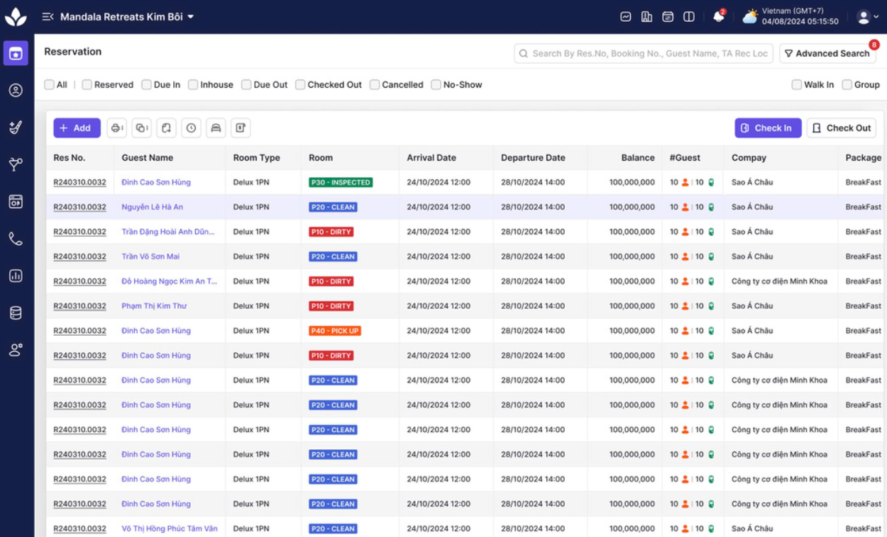- Tích hợp nhiều thao tác tại một nơi: Có thể check-in/check-out, chỉnh sửa đặt phòng, tìm kiếm nâng cao