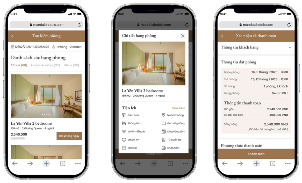 - Thông tin minh bạch & rõ ràng: Cung cấp chi tiết thời gian nhận/trả phòng...